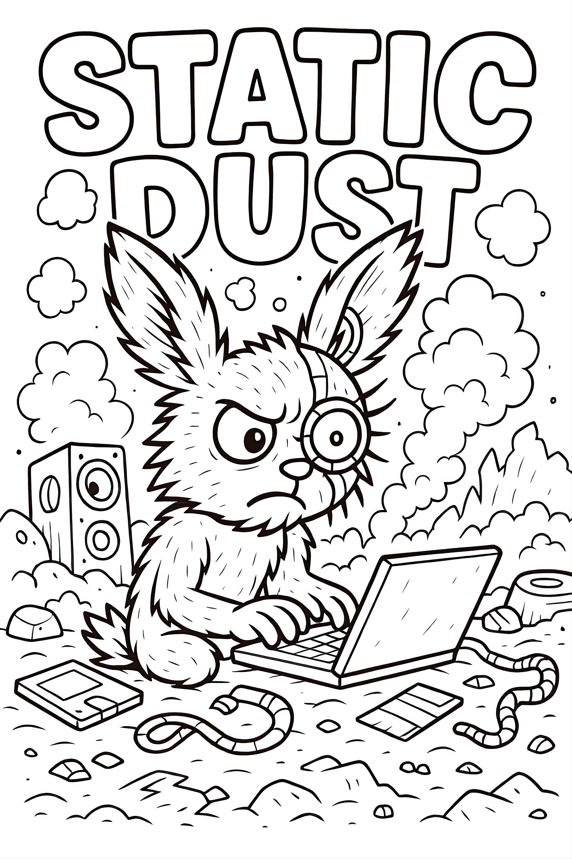 Not all colouring books are sunshine and flowers. This one belongs to the outsiders. Inside, the Dust Bunnies come alive in raw, glitch-scarred illustrations—feral, strange, and unapologetically themselves. Every page is an invitation to create, destroy, and reimagine.